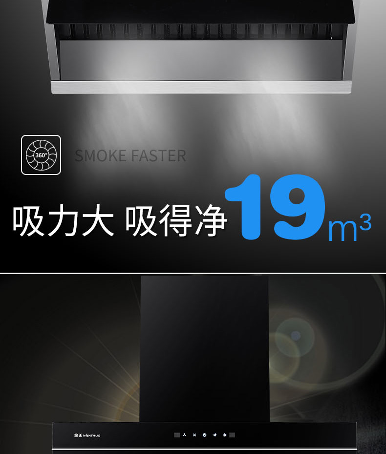 ●大风量/3D拢烟结构/阻尼开合;