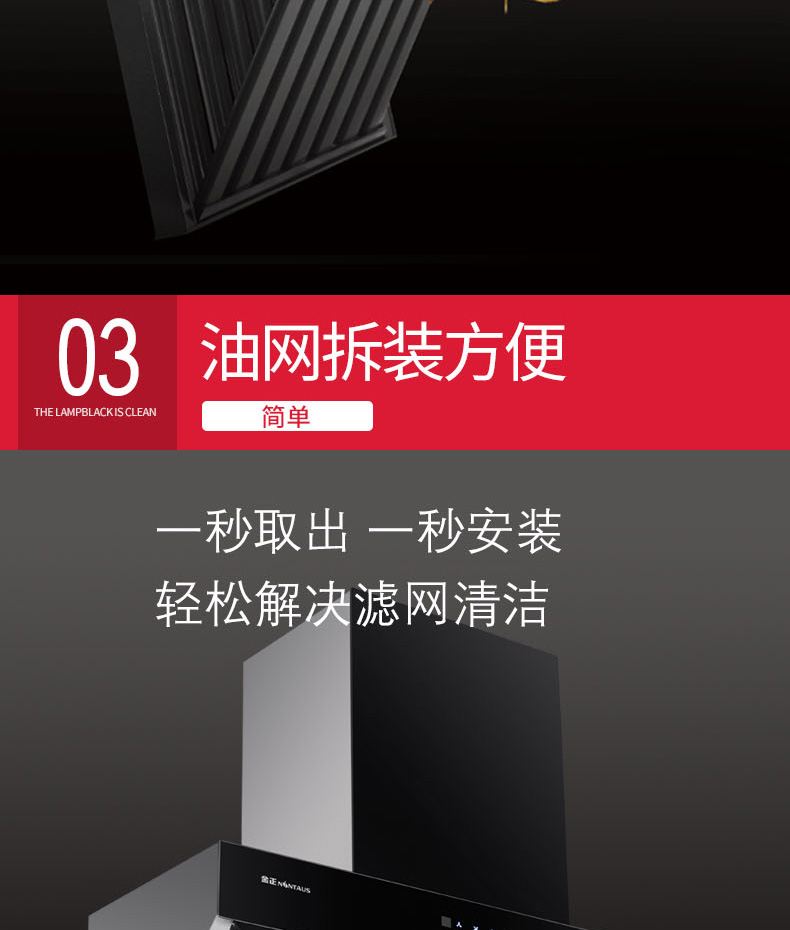 ●油烟分离/免拆洗;