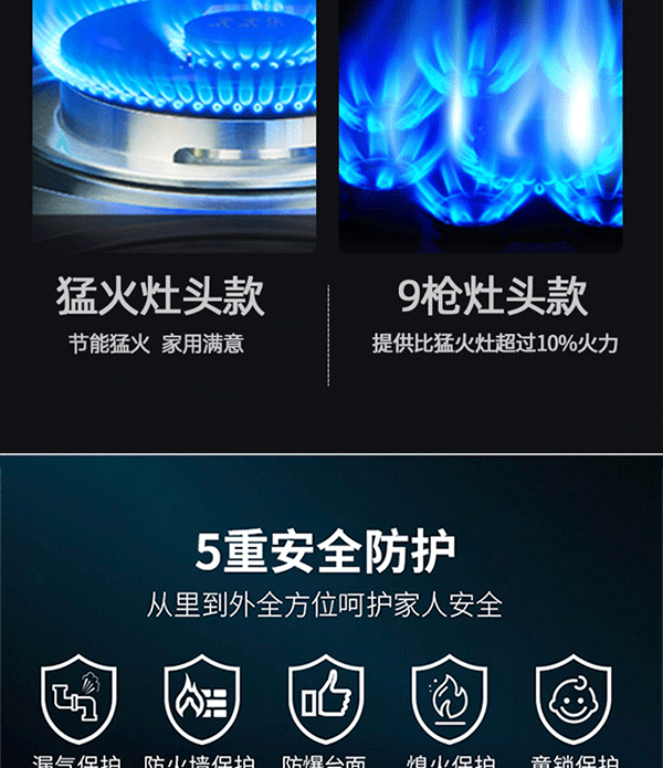 ● 精铜火盖/九腔猛火/拉伸水盘;