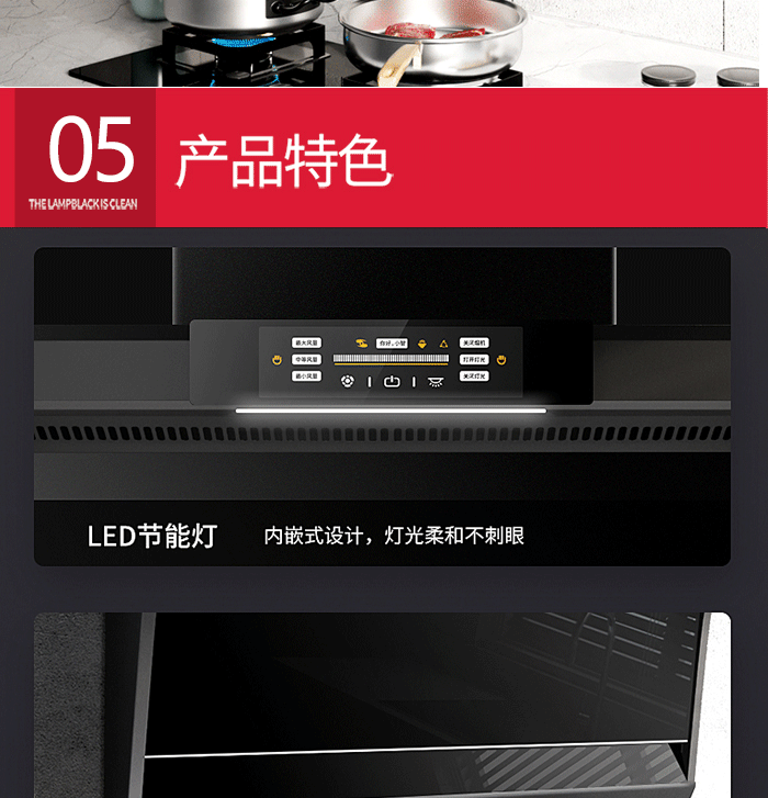 ● 大风轮/玻璃背板,方便清洁