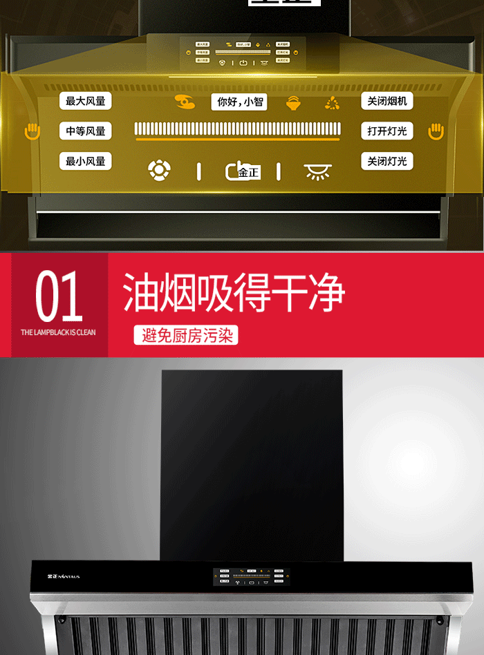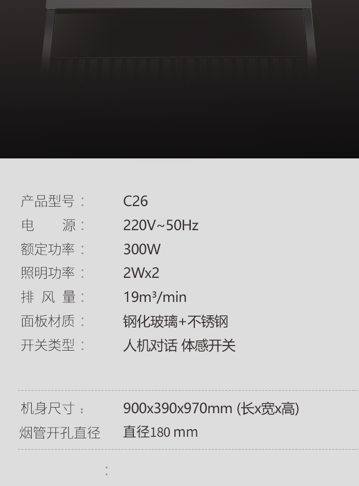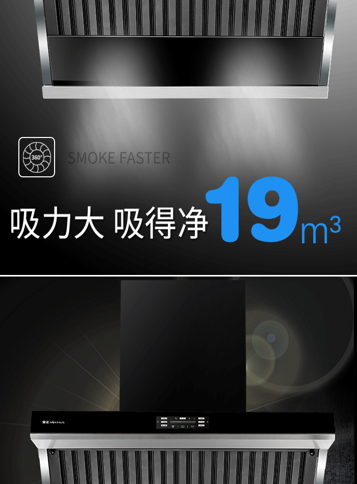 ● 大风量/拢烟结构/上置电机