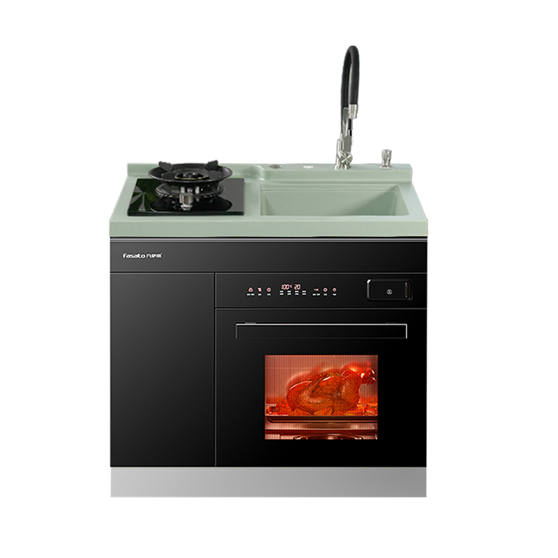 ● 产品包含:烟机/单灶/石英石压铸一体化水槽台面/蒸烤箱/收纳柜/可抽拉水龙头/沥水架/下水器/铜三通