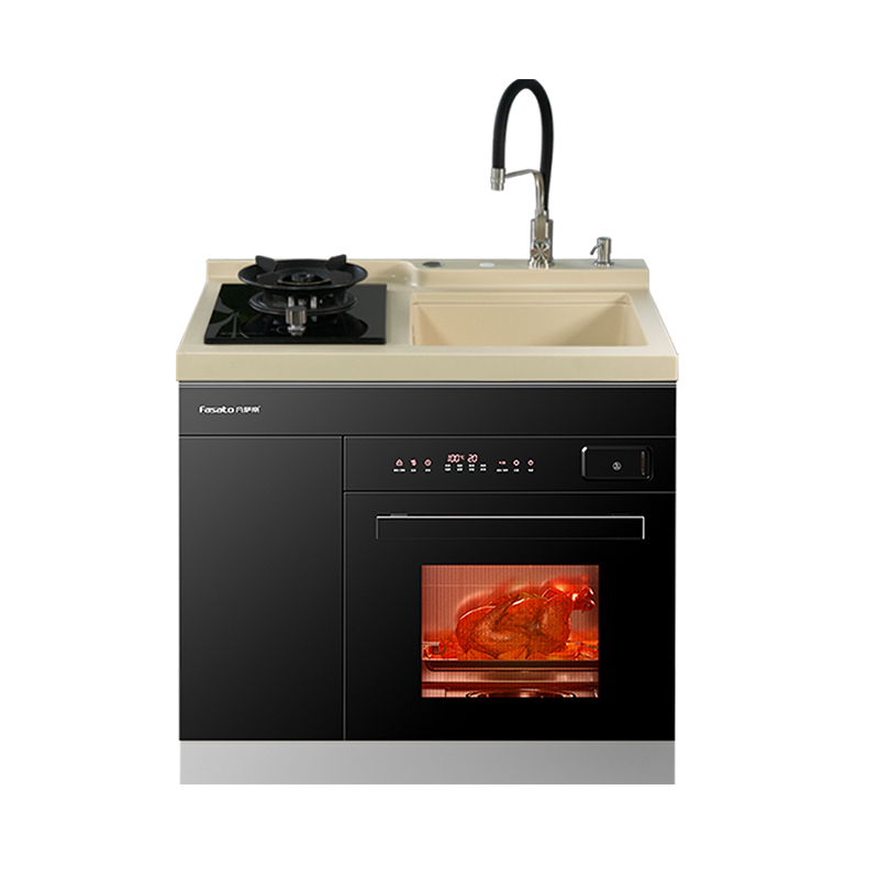 ● 产品包含:烟机/单灶/石英石压铸一体化水槽台面/蒸烤箱/收纳柜/可抽拉水龙头/沥水架/下水器/铜三通