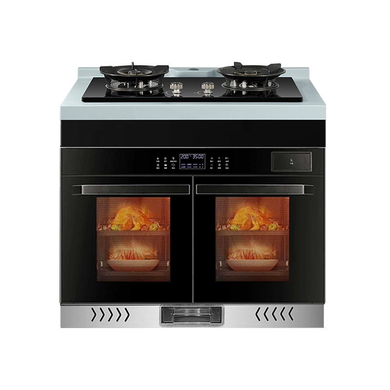 ● 产品包含:烟机/双灶/石英石压铸一体化台面/蒸烤箱。