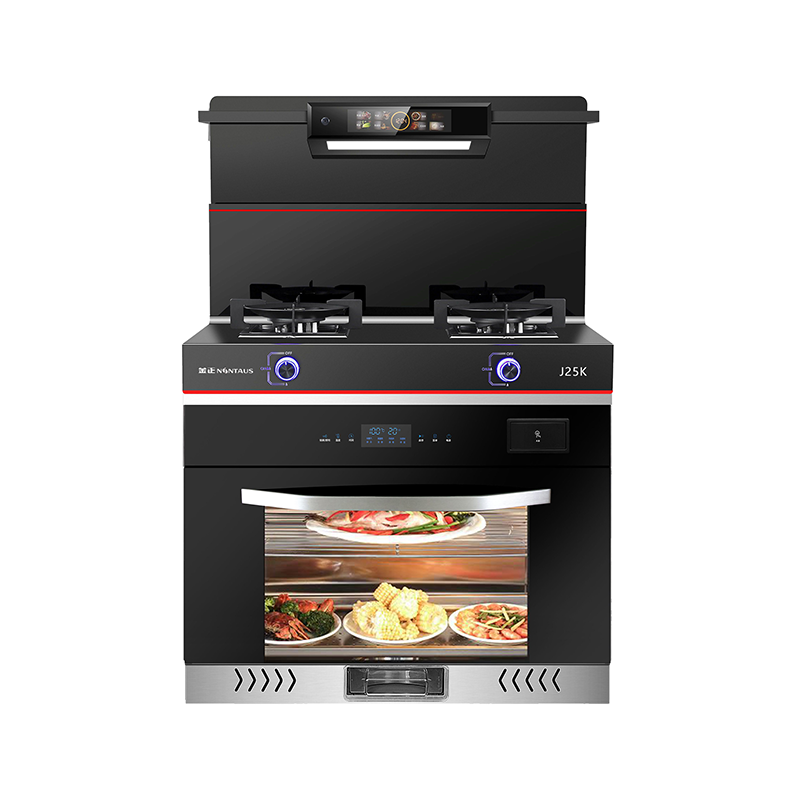 磨砂钢化玻璃面板;蒸烤空气炸/烟灶灯联动;280超大风轮/彩灯旋钮/声控小智体感;头部恒温暖菜宝/热除油清洗;内置防火墙/零秒点火/漏气安防/灶具定时
